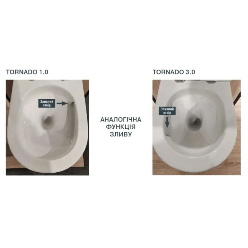 Інноваційна система змиву Tornado створює потужний вихровий потік води, який рівномірно омиває внутрішню поверхню чаші та ефективно підтримує гігієну. Сидіння оснащене механізмом Soft-close, що забезпечує плавне та тихе закривання без різких ударів.